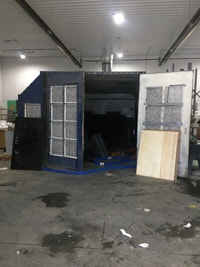 50 1 Photobooth Calgary. We are sharing our automotive spray booth with you. Warehouse with Airmake up Roof top Paint Booth and Dust collector.